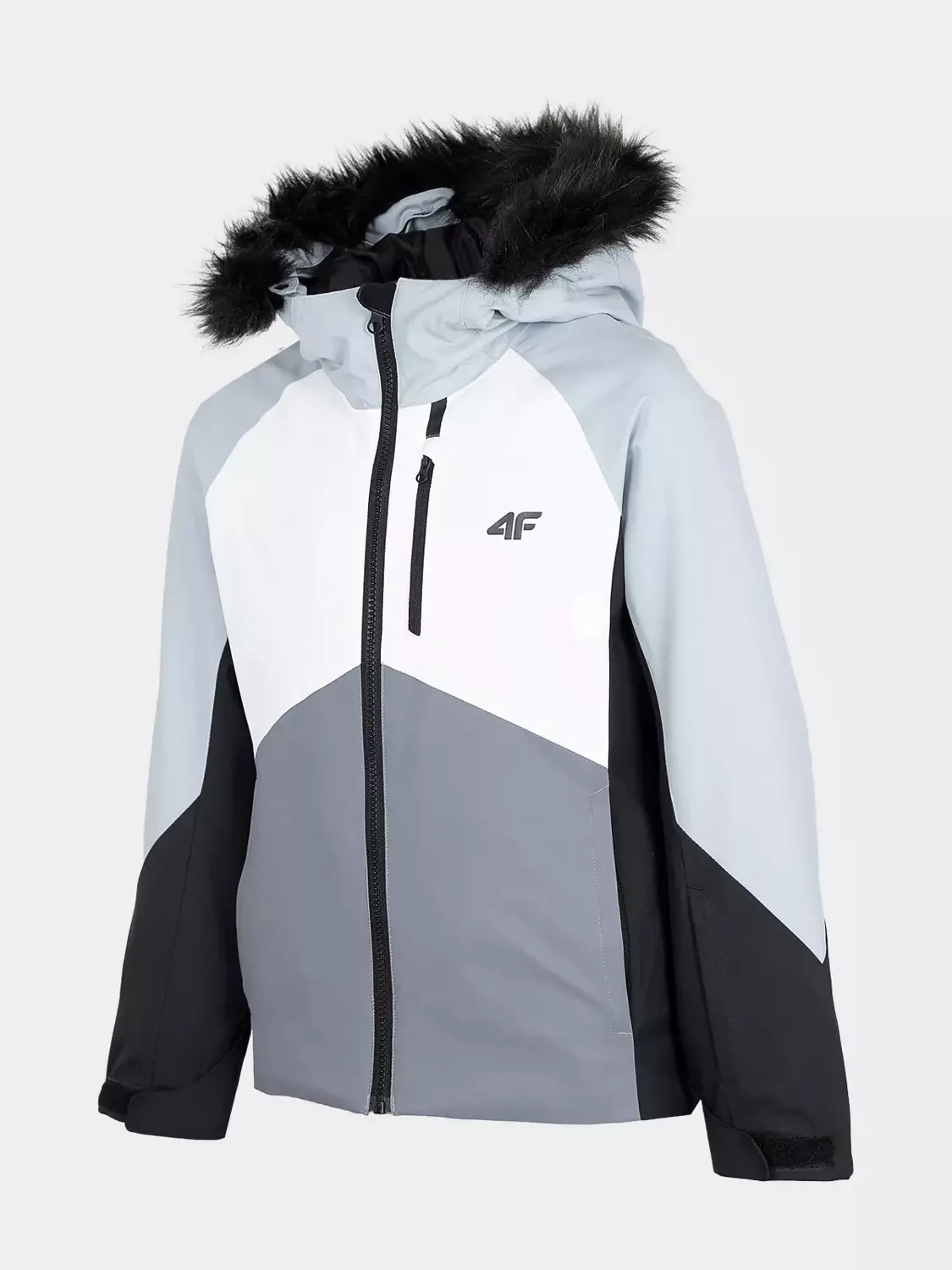 - zintegrowany kaptur z regulacją i odczepianym sztucznym futerkiem