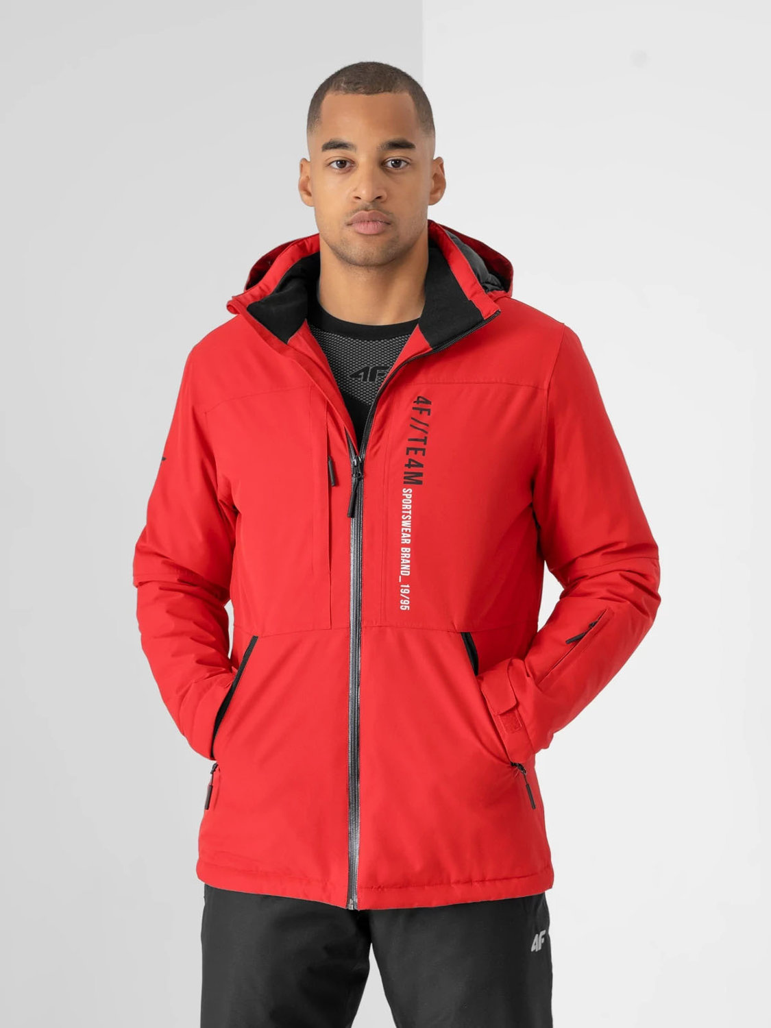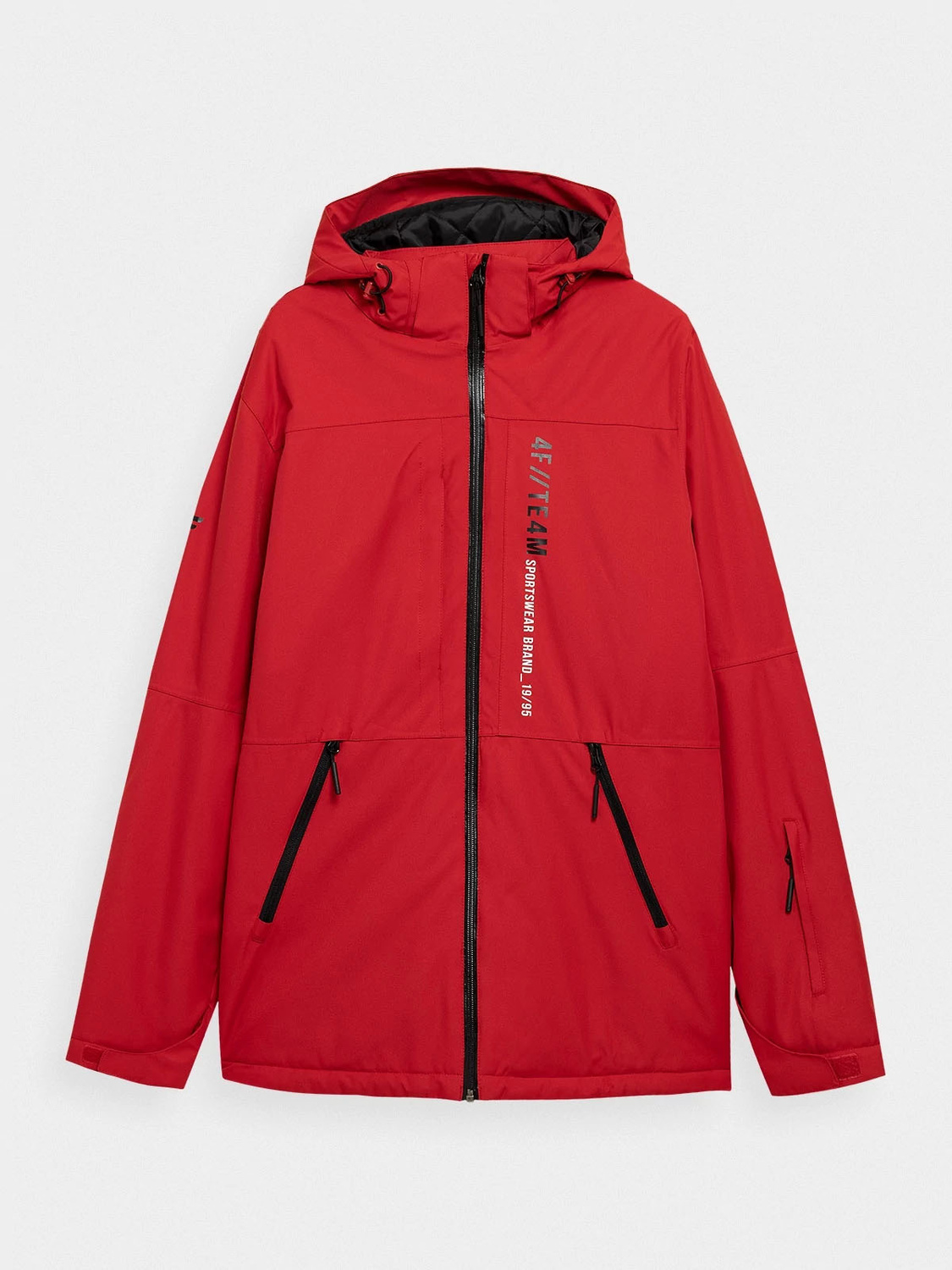 Kurtka męska narciarska marki 4F, wykonana została z wysokiej jakości materiałów z dbałością o najmniejsze szczegóły, zapewni komfort i ciepło podczas wszelakich zimowych szaleństw. Swobodny, podpasowany krój nie krępuje ruchów. Dzięki membranie NeoDry i hydrofobowej impregnacji jest odporna na średnie opady śniegu czy deszczu. Trzyma ciepło, a jednocześnie odprowadza wilgoć na zewnątrz i nie pobiera jej do wewnątrz. Zintegrowany kaptur osadzony na wysokiej stójce, ochroni szyję i głowę przed zimnem. Mankiety regulowane na rzep, dla lepszego dopasowania. Kurtka posiada aż sześć kieszeni, dwie zewnętrzne bo bokach, jedną zapinaną na zamek na lewym rękawie, jedną ukrytą pod plisą na piersi i dwie wewnętrzne. Zamek błyskawiczny zabezpieczony został wewnętrzną plisą przeciwwiatrową, zakończony miękką patką chroniącą podbródek przed otarciami. Dodatkowym atutem kurtki jest zintegrowany, antypoślizgowy pas śnieżny z zapięciem na napy zabezpiecza przed przedostawaniem się śniegu oraz zimna do wnętrza.